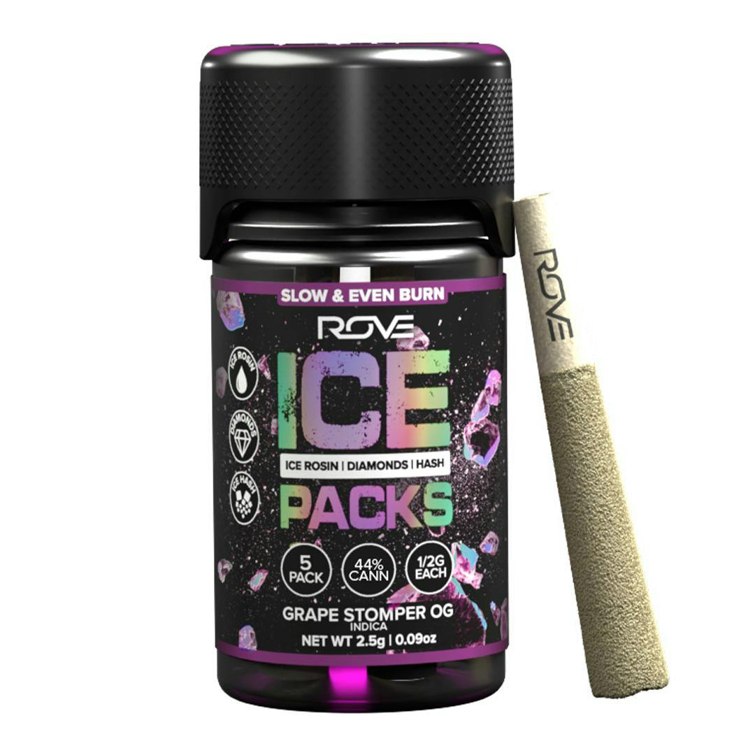 GRAPE STOMPER OG | ICE PACKS DIAMOND-INFUSED PREROLLS | 5 PACK OF 0.5G | 2.5G