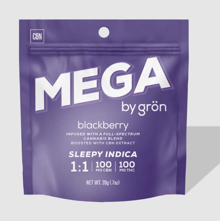 1:1 BLACKBERRY MEGA - CBN:THC - SLEEPY INDICA | GUMMY | 2 PACK