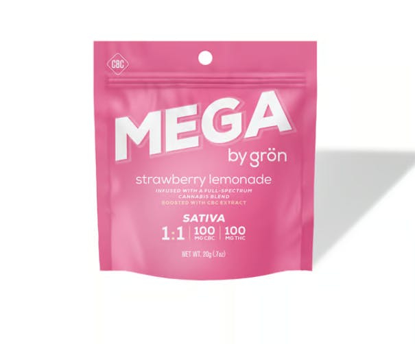 1:1 STRAWBERRY LEMONADE MEGA - CBC:THC - SATIVA | GUMMY | 2 PIECES OF 50 MG